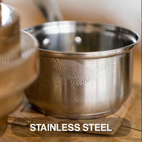 - Works well with stainless steel, glass, and ceramic serveware.